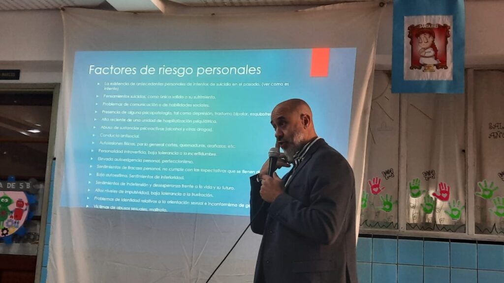 Ayer lunes 17, se desarrolló la reunión Plenaria Institucional, donde participaron los niveles inicial y primario, durante la misma, el Dr Emiliano Ávila Castro, médico psiquiatra y forense, Presidente de la Asociación de Psiquiatras de Santa Fe, disertó sobre «Cuidar a los que cuidan y suicidio». Esta actividad se desarrolló en el marco del ciclo de formación sobre «Salud Mental»